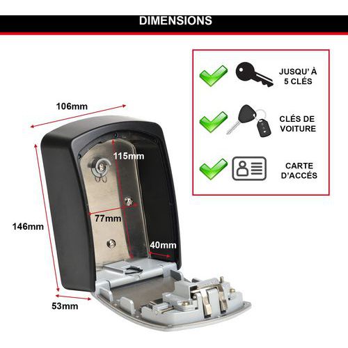 - Sleutelkastje met combinatieslot maat L, voor een grote opbergcapaciteit.