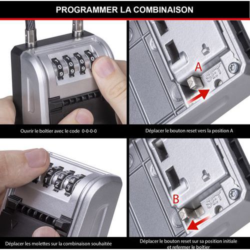 - Programmeerbare combinatie van 4 cijfers met brede draaiknoppen (10.000 codes beschikbaar).