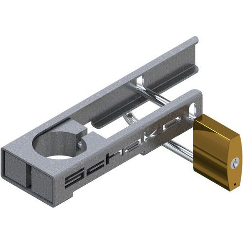 | Productnaam | Slot voor bouwhek, Gebruiksomgeving: Buitenterrein, Kleur: Grijs/zilver, Totale lengte: 215 mm |