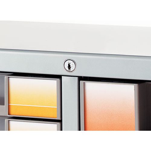 | Productnaam | Slot voor kast en toonbank, Frame kleur: Grijs, Type: Voor 3 koloms ladekast, Geleverd gemonteerd: ja |