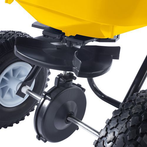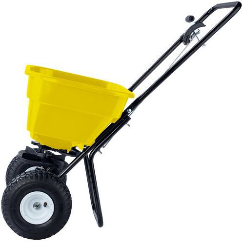 - Deze set bevat een strooiwagen op luchtbanden met een capaciteit van 30 liter en een ergonomische sneeuwschep.