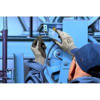 - De donkere kleur beperkt vlekken op de handschoen in vervuilende omgevingen en verlengt de gebruiksduur.