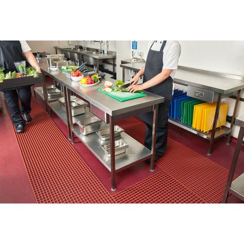 Soepel rooster voor een omgeving met voedingsmiddelen, bestand tegen dierlijke vetten. Gegarandeerde veiligheid in ruimten waar dierlijk materiaal wordt verwerkt. Extra groot, opengewerkt rooster zodat afval erdoor heen kan. Rooster gemaakt met schimmelwerende en antibacteriële additieven. Eenvoudig te hanteren en eenvoudig te reinigen voor een perfecte hygiëne. Gemaakt in het UK Rol Tapijt gebruik : Zeer intensief