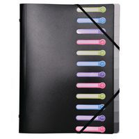 | Productnaam | Sorteermap 10 st pp uitgesneden vensters 12 indelingen 24x32, Aantal tabs: 12, Kleur: Diverse |