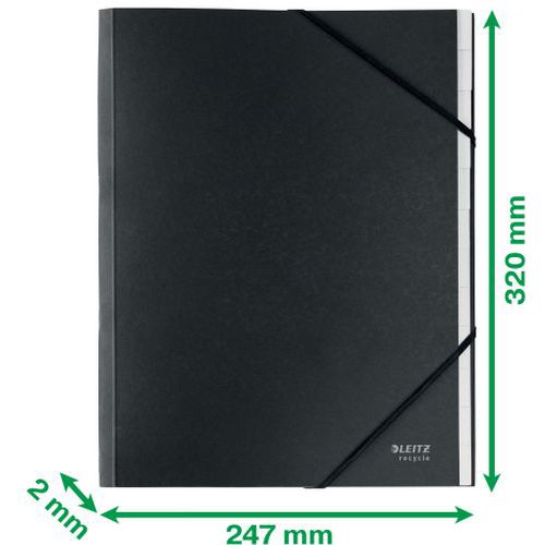 | Productnaam | Sorteermap van gerecycled karton met 6 of 12 vakken, Aantal tabs: 12, Kleur: Zwart, Materiaal: Karton |