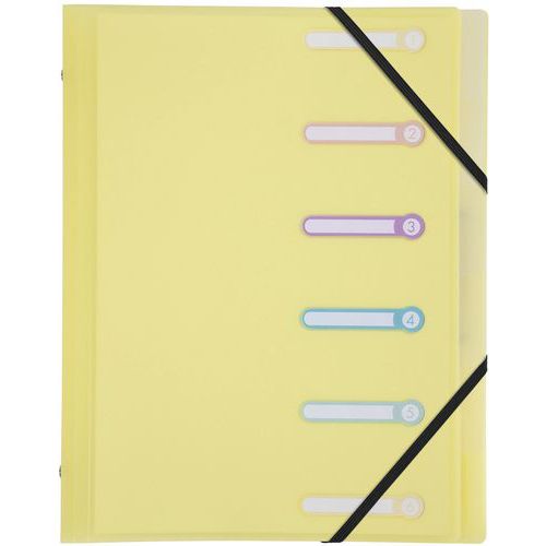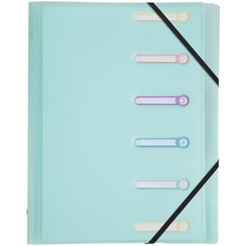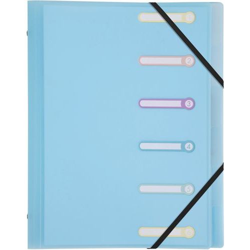 | Productnaam | Sorteermap met 6 vakken, Aantal tabs: 6, Kleur: Blauw/rood, Materiaal: Polypropyleen, VOC-vrij: ja |