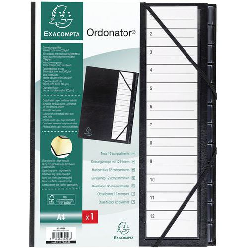 | Productnaam | Sorteermap Ordonator met genummerd plastic ruiters 1 tot 12 Exacompta, Aantal tabs: 12, Kleur: Zwart |