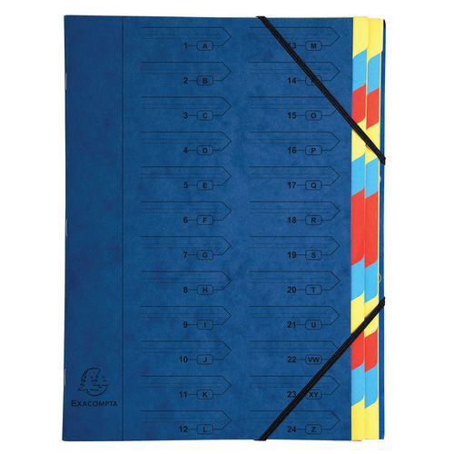 | Productnaam | Sorteermap vast rug elastosluiting 24 indelingen Exacompta, Aantal tabs: 24, Kleur: Rood, Materiaal: Karton |