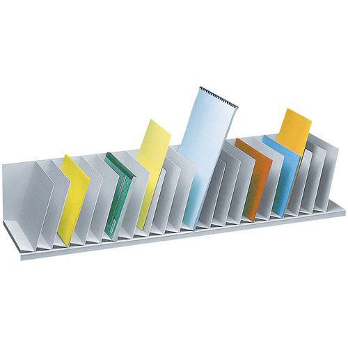 Verticaal sorteerrek met schuin tussenschot voor kasten, Aantal vakken: 20, Kleur: Grijs Verticaal sorteerrek met schuin tussenschot voor kasten, Aantal vakken: 20, Kleur: Grijs