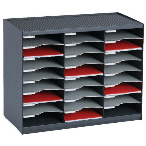 Sorteermodule 24 vakken, Aantal vakken: 24, Nuttige hoogte vak: 5.8 cm, Kleur: Grijs Sorteermodule 24 vakken, Aantal vakken: 24, Nuttige hoogte vak: 5.8 cm, Kleur: Grijs