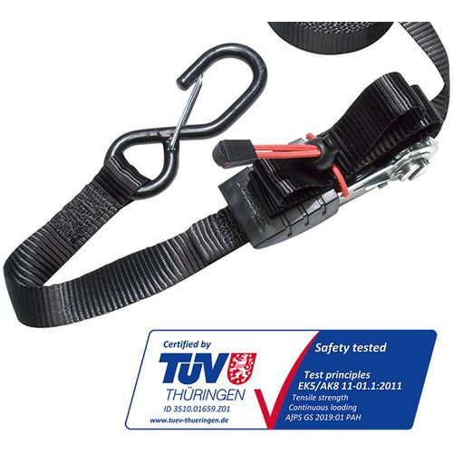 | Productnaam | Spanband met ratel en S-haak, Lengte: 4250 mm, Veilig hefvermogen: 400 kg, Breedte: 25 mm, Kleur: Grijs |
