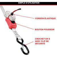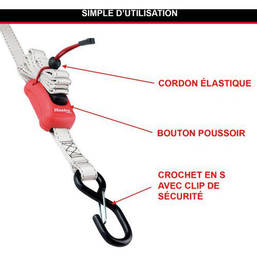 | Productnaam | Spanband met zelfsluitende gesp en S-haak, Lengte: 2500 mm, Veilig hefvermogen: 250 kg, Breedte: 25 mm |