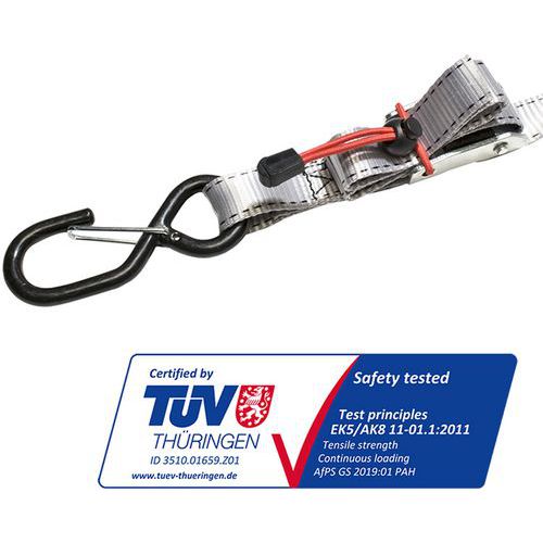 | Productnaam | Spanband met zelfsluitende gespen, Lengte: 180 mm, Veilig hefvermogen: 250 kg, Breedte: 25 mm, Kleur: Grijs |