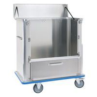 Containerwagen van aluminium voor universeel gebruik. Hygiënisch, geurloos en roest niet. Ergonomisch en eenvoudig in gebruik, zelfs bij maximale belasting. Glad oppervlak met wanden zonder ribbels, voor een eenvoudige reiniging. De neerklapbare wand wordt in geopende stand gehouden dankzij twee magneten. Deksel met scharnieren, 2 bevestigingsriemen en 2 sluitingen met hendel. Hellende bodem met 2 afvoeropeningen die uitgerust zijn met een afvoerklep, dop en ketting. De bodem is afgedicht met silicone. Geanodiseerde handgrepen op de twee wanden aan de voorzijde.