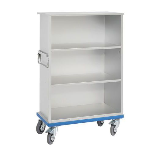 Aluminium kastwagen zonder deur G®-CUP Light van geanodiseerd aluminium dat beschermt tegen schuren en corrosie. Zonder deuren voor snelle toegang, hygiënisch en ruimtebesparend. Gladde binnenkant om het schoonmaken en het hanteren eenvoudiger te maken. Eenvoudig te hanteren dankzij de 4 zwenkwielen, waarvan 2 met rem. Zonder deur. Geschikt voor het naleven van de gezondheidsvoorschriften