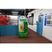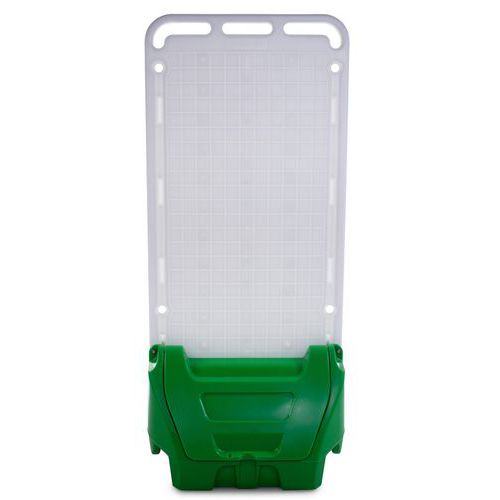 Personaliseerbare mobiele verkoopstandaard. Geschikt voor gebruik binnen en buiten. Eenvoudige verplaatsing dankzij de ergonomische handgrepen. Eenvoudig te monteren en demonteren, eenvoudig in onderhoud. Het materiaal is zeer goed bestand tegen UV en chemische producten. Gekanteld deksel: voor eenvoudige afvoer van regenwater. 2 robuuste wielen Ø 200 mm. Paneel met hoogte 1220 mm. Bak met opening tot 98°, hoogte 505 mm. Gemaakt in het UK