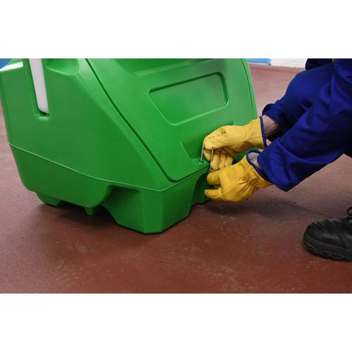 Personaliseerbare mobiele verkoopstandaard. Geschikt voor gebruik binnen en buiten. Eenvoudige verplaatsing dankzij de ergonomische handgrepen. Eenvoudig te monteren en demonteren, eenvoudig in onderhoud. Het materiaal is zeer goed bestand tegen UV en chemische producten. Gekanteld deksel: voor eenvoudige afvoer van regenwater. 2 robuuste wielen Ø 200 mm. Paneel met hoogte 1220 mm. Bak met opening tot 98°, hoogte 505 mm.