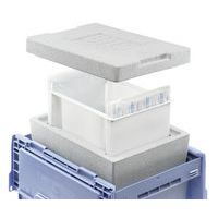Samenstelling: - 1 doos van Neopor® met deksel - 1 inzetelement van wasbaar PS - 3 koelelementen met packs van Icecatch® Solid Isolated