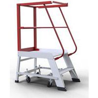 - Smalle, rijdende trapladder met zelfdragende antisliptreden. Betrouwbaar en zeer veilig: geheel mechanisch gelaste constructie. Valbeveiliging, antislip-stootrand en valbeveiligingsstang. Platform van aluminium plaatstaal met antislip-traanplaat. Lichte, compacte en hanteerbare trapladder met niet-strepende wielen. Hoogte reling 1 m.