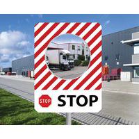 Spiegel met veiligheidsopschrift INFOMIR, Bewakingsradius: 12 m, Vorm: Rond, Zicht: 90 °