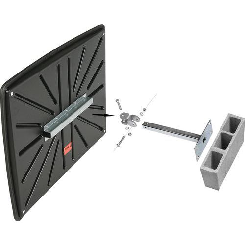 - Kan worden bevestigd aan de muur of op dragers met een diameter van 60 à 90 mm.
