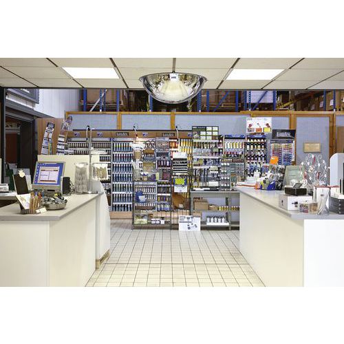 - Met deze spiegel in een halve bol wordt de controle van het verkeer, het toezicht in een winkel, magazijn, fabriek, machine mogelijk.