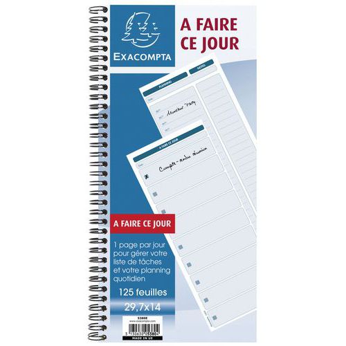 | Productnaam | Spiraalschrift 29.7x14cm To do 125 blad Franstalig Exacompta, Gramsgewicht: 60 g/m², Aantal pagina's: 125 |