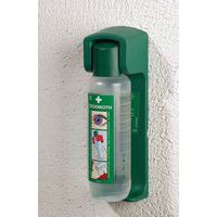 - De fles met oogspoeldouche van Cederroth gaat automatisch open bij verwijdering uit de muurhouder.