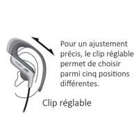 - Met een verstelbare oorclip (vijf standen) voor een comfortabele pasvorm.
