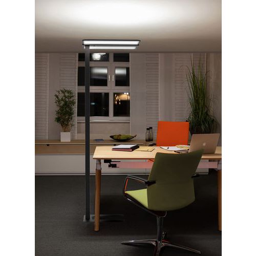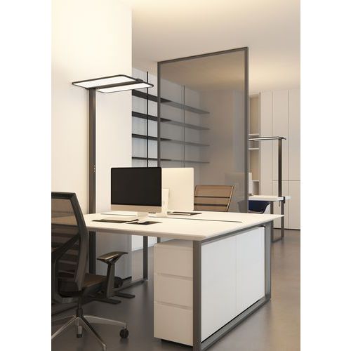 De staande LED-lamp Atlas Unilux biedt een krachtige en homogene verlichting, afgestemd op de werkplekken. Deze combineert directe en indirecte verlichting met een evenwichtige verspreiding van het licht. Dankzij de regelbare lichtintensiteit kan de verlichting worden afgestemd op de dagelijkse behoeften. De lamp is uitgerust met sensoren, waardoor deze zich automatisch aan de lichtsterkte en de aanwezigheid aanpast. Het stabiele en verfijnde ontwerp past goed in alle professionele omgevingen.