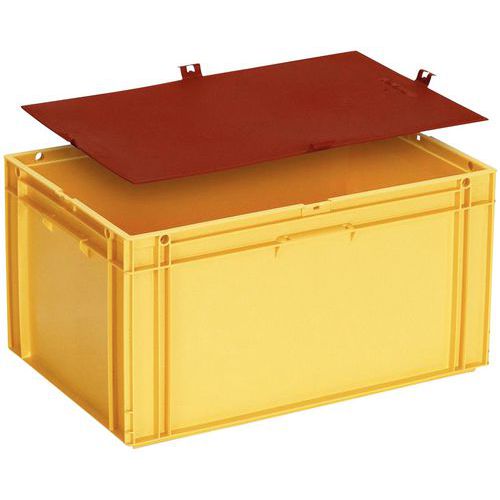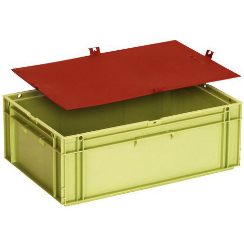 Grote stevigheid dankzij de zijdelingse ribben. Stapelbare bak, geschikt voor elk handmatig en automatisch vervoer. 8 grepen voor elke geautomatiseerde handeling. Geïntegreerde etikettenhouder voor genormaliseerde etiketten Odette. Gemaakt in de EU Max. belasting (kg) : 15