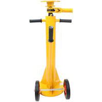 Stabilisatiesteun voor opleggers, voor veilig laden en lossen. Robuuste en betrouwbare oplossing met groot draagvermogen van 45 ton, voor een uitstekende stabiliteit. Regelen van de hoogte met verstelbare schroeven dankzij een ratelmechanisme en een hefboomarm. Zeer mobiel dankzij de twee transportwielen, voor eenvoudigere verplaatsing en positionering. Gebruiksvriendelijk.