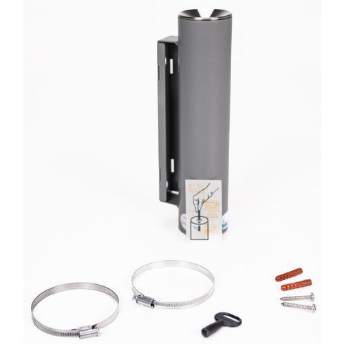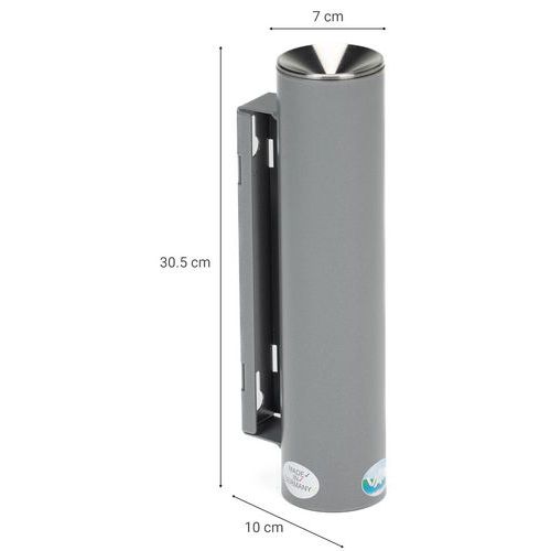Stalen beveiligde asbak, uitgerust met een inzetstuk en een driehoekig slot (1 sleutel). Gemaakt van hoogwaardig gegalvaniseerd plaatstaal met een poedercoating van epoxy-polyester. Opening met een diameter van 9 mm met waterdicht inzetstuk. Trechter van rvs. Muur- of paalbevestiging. Zonder rookontwikkeling, dus zonder personen in de directe omgeving te hinderen!