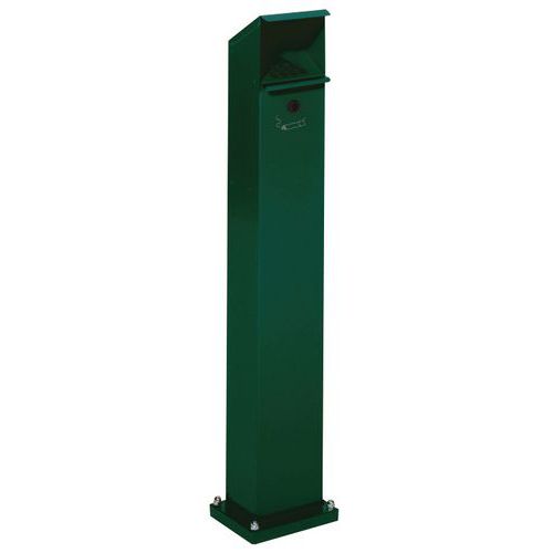 Asbak op voet, gemaakt gegalvaniseerd plaatstaal. Poedercoating van epoxy-polyester of rvs. De asbak is voorzien van een slot (1 sleutel) en een bevestigingsplaat. Aantrekkelijke asbak voor buiten!