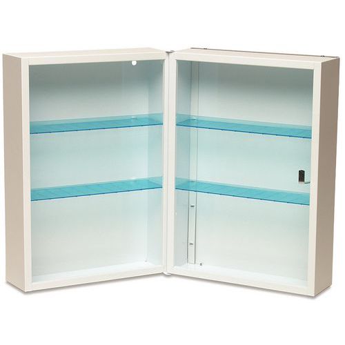 | Productnaam | Stalen EHBO-kast, Hoogte: 46 cm, Aantal deuren: 1, Breedte: 34 cm, Diepte: 18 cm, Kleur: Wit |