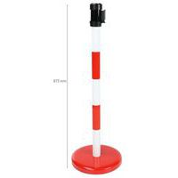 Stalen paal met band op sokkel - Manutan Expert Afzetpaal op sokkel voor het eenvoudig afsluiten van een gebied, het beperken van de toegang of het geleiden van personen in wachtrijen. De uittrekbare band kan worden bevestigd aan een andere paal of een wandhouder (niet meegeleverd).