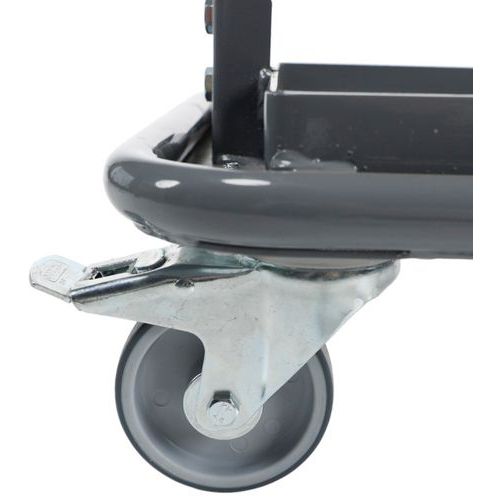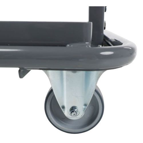 - Met 2 zwenkwielen met remmen en 2 vaste wielen is de wagen eenvoudig en veilig in gangpaden te verplaatsen.