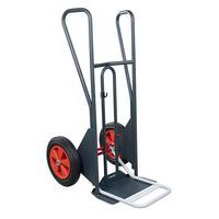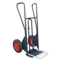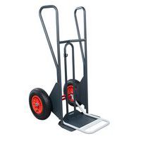 - Steekwagen met vaste en opklapbare schep en gebogen achterkant. Zeer robuuste constructie van mechanisch gelast buisstaal (Ø 25 mm). Hoge achterkant: voor goede bevestiging van de lading tijdens transport. Veiligheidshandgrepen: glijden niet, gekoppeld aan het frame. Gegoten kunststof retour: beschermt de handen tegen stoten. Luchtbanden voor gebruik op gladde of oneffen ondergronden. Zeer robuuste epoxylak.