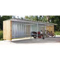 Let op: fietsenrek niet meegeleverd. Geleverd zonder schroeven voor vloerbevestiging (zorg voor een betonsokkel en zware schroeven – metalen pluggen). Koop het aanbouwelement alleen als aanvulling op een enkelzijdige module.