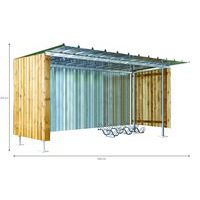 Let op: fietsenrek niet meegeleverd. Geleverd zonder schroeven voor vloerbevestiging (zorg voor een betonsokkel en zware schroeven – metalen pluggen). Koop het aanbouwelement alleen als aanvulling op een enkelzijdige module.