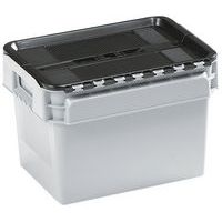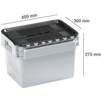 | Productnaam | Standaard bak met geïntegreerd deksel, Totale inhoud: 20 L, Totale hoogte: 275 mm, Totale breedte: 300 mm |