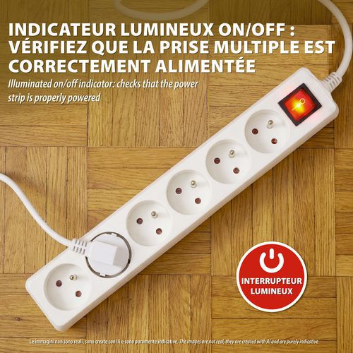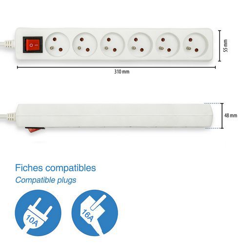 | Productnaam | Standaard stekkerdoos met NF-schakelaar – Velamp, Intensiteit: 16 A, Schakelaar: ja, Aantal contactdozen: 6 |