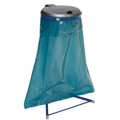 Afvalzakhouder met kunststof deksel. Dekselkleur naar keuze afhankelijk van het soort afvalscheiding. Stevige, goed afgewerkte constructie voor optimale bescherming. De zak is er eenvoudig uit te halen dankzij een metalen bevestigingsring. Te gebruiken met papieren of kunststof zakken.