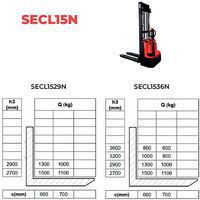 | Productnaam | Stapelaar Elektrisch laadvermogen 1500 kg hefhoogte 2815 mm, Max. belasting: 1500 kg, Max. hefhoogte: 2815 mm |