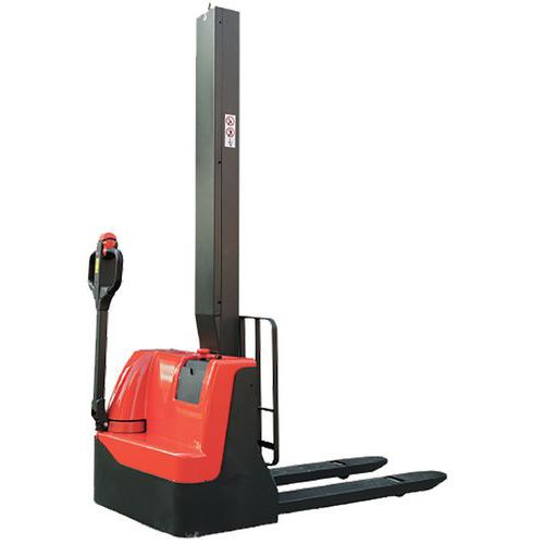 - Elektrische stapelaar met balkmast met een hefvermogen van 1 ton.