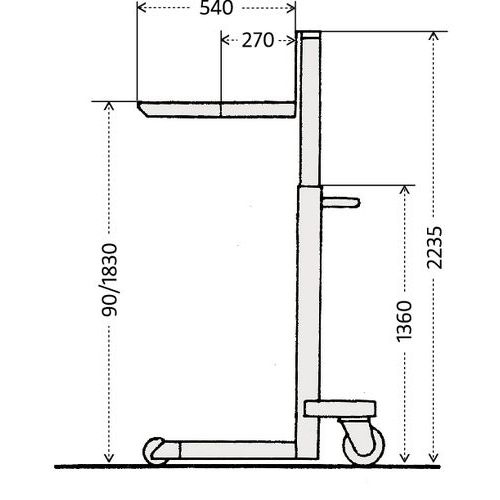 | Productnaam | Stapelaar met dubbele telescopische mast, Max. belasting: 250 kg, Max. hefhoogte: 1830 mm |