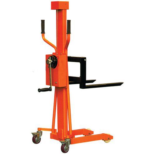 | Productnaam | Stapelaars mini handbediend 150 KG, Max. belasting: 150 kg, Gewicht: 62 kg, Dikte vork: 30 mm |
