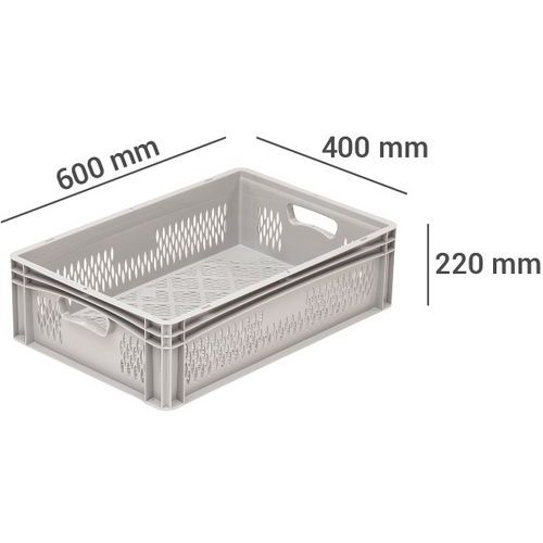 | Productnaam | Opengewerkte stapelbare bak Europese norm, Totale inhoud: 41.7 L, Totale hoogte: 220 mm |