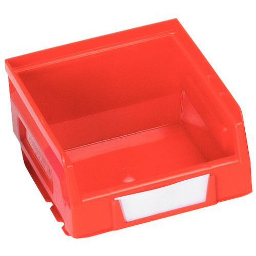 Randen met blokkering voor meer stabiliteit bij het stapelen. Grote stevigheid dankzij de zijdelingse groeven. Platte en slipvaste bodem voor het gemakkelijk vastpakken. Ligt uitstekend in de hand door de handgreep aan de voorkant. Zeer schokbestendige kunststof bak. Gemakkelijke identificatie door de etikethouder.