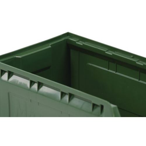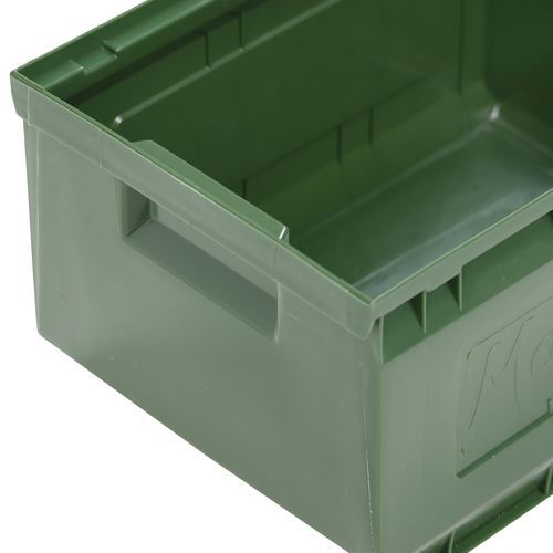 Randen met blokkering voor meer stabiliteit bij het stapelen. Grote stevigheid dankzij de zijdelingse groeven. Platte en slipvaste bodem voor het gemakkelijk vastpakken. Ligt uitstekend in de hand door de handgreep aan de voorkant. Zeer schokbestendige kunststof bak. Gemakkelijke identificatie door de etikethouder.